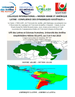 Le Centre « CRILLASH » de l’Université des Antilles, pôle Martinique, en partenariat avec l’Observatoire des Amériques de l’Université du Québec à Montréal – Canada, la revue French Journal for Media Research (ERIH+, DOAJ, PUBLICATION FORUM) et l’Arab Association for Communication Studies de l’Université Libanaise de Beyrouth organise le Colloque international « monde arabe et amérique latine : confluence des dynamiques sociétales » qui aura lieu le 3 et 4 mai 2018 au campus universitaire de Schœlcher en Martinique.