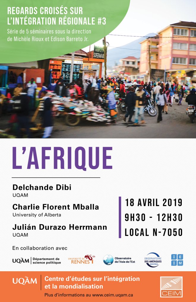 Le Centre d’études sur l’intégration et la mondialisation est heureux de vous inviter au troisième séminaire de la série « Regards croisés sur l’intégration régionale » qui portera sur l’Afrique.